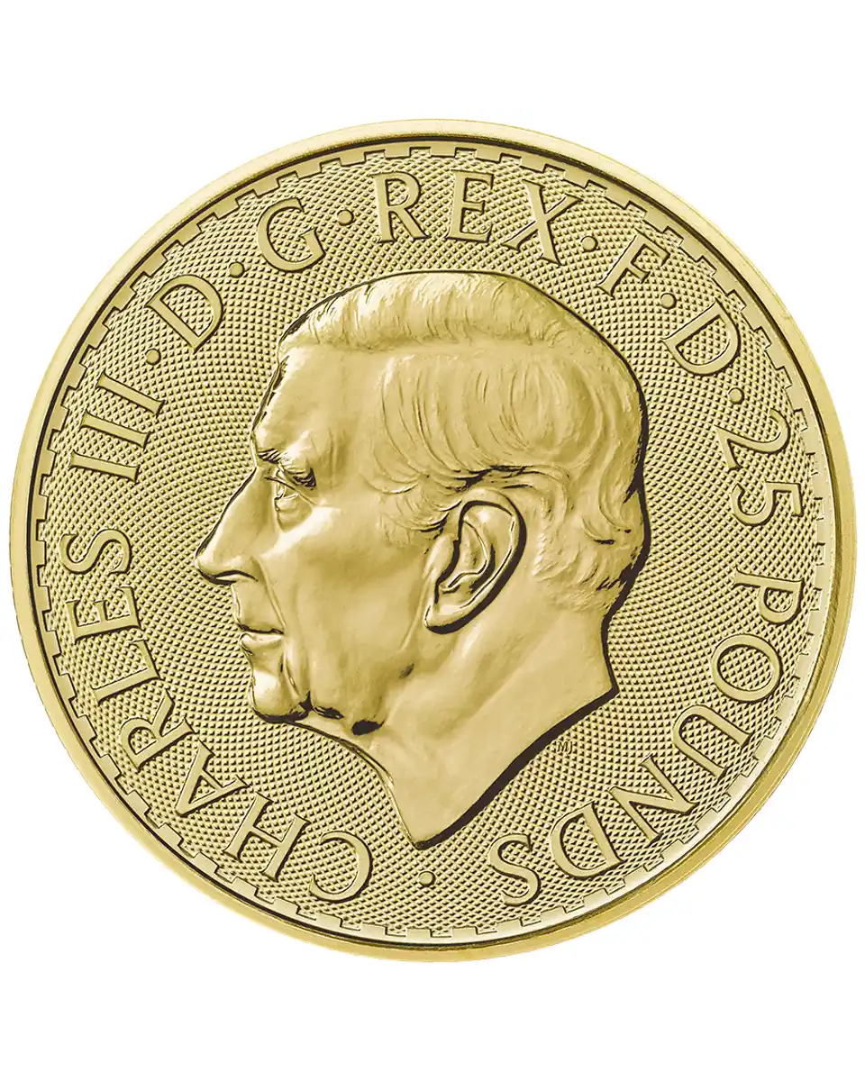 Each coin contains 7.78 grams of 999.9 fine gold (24 carat) and carries a £25 face value, backed by the UK government. The Britannia design, a national emblem of strength and integrity, has represented British stability since 1987 — making this coin a cornerstone of any investor’s or collector’s portfolio.