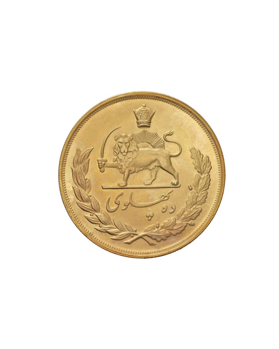 The 10 Pahlavi Gold Coin is one of the most prestigious and rare gold coins ever minted by the Central Bank of Iran (Bank Markazi) during the reign of Mohammad Reza Shah Pahlavi. Struck in 22 carat gold (916 fineness), this magnificent coin has a total weight of 81.3 grams, making it one of the largest and most valuable bullion coins from the Middle East.